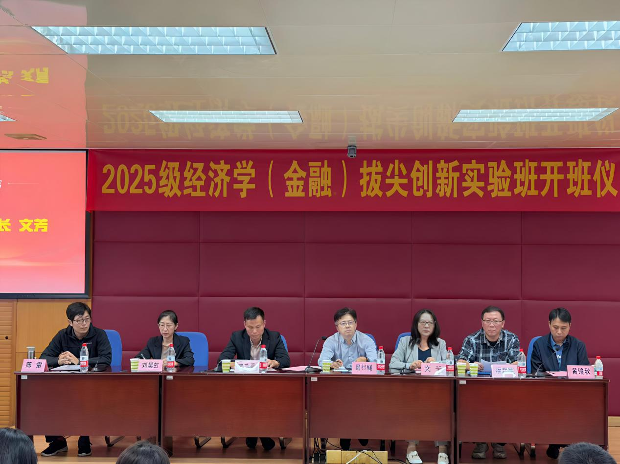 2025年10月24日下午,我集团2025级经济学(金融)拔尖人才培养创新实验班开班仪式在行政楼五楼大会议室举行,校长易行健出席开班仪式并讲话。学校教务处、学生处、太阳集团2138网址主要负责人、系主任、班主任、辅导员以及2025级经济学(金融)拔尖人才培养创新实验班全体学生参加开班仪式。仪式由太阳集团2138网址党委副书记黄镜秋主持。